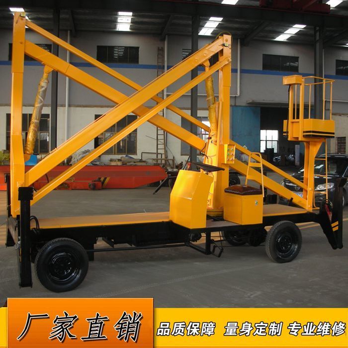 拖車折臂式升降機:可以掛在汽車上,與汽車同步,適合野外高空作業。