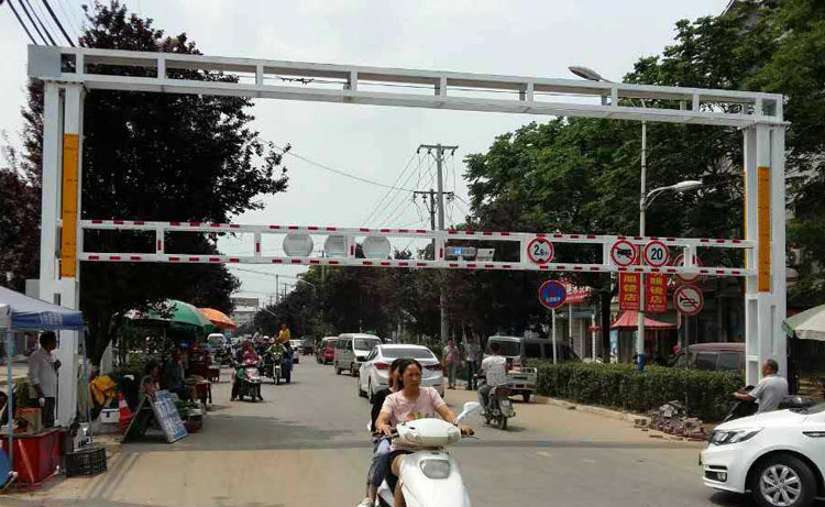 固定限高架又分為固定一體限高架和固定撞不壞限高架。固定一體限高架為一次性不可調節高度限高架,靠架子本身攔截車輛,固定式撞不壞限高架在緊急情況下要達到車輛通行必須依靠外力抬起,比如吊車等;固定一體限高架主要用于橋梁、涵洞、隧道入口處的門型構架,一般為鋼結構焊接而成,起防護橋梁、涵洞、隧道的作用;上有標志牌,標有限高米數,用于提示車輛。可調節高度限高架分為手動限高架、電動限高架兩種;手動限高架通過手動裝置在需要時可手動抬起限高桿;電動限高架又分為電動限高架、電動液壓限高架、氣動限高架等。