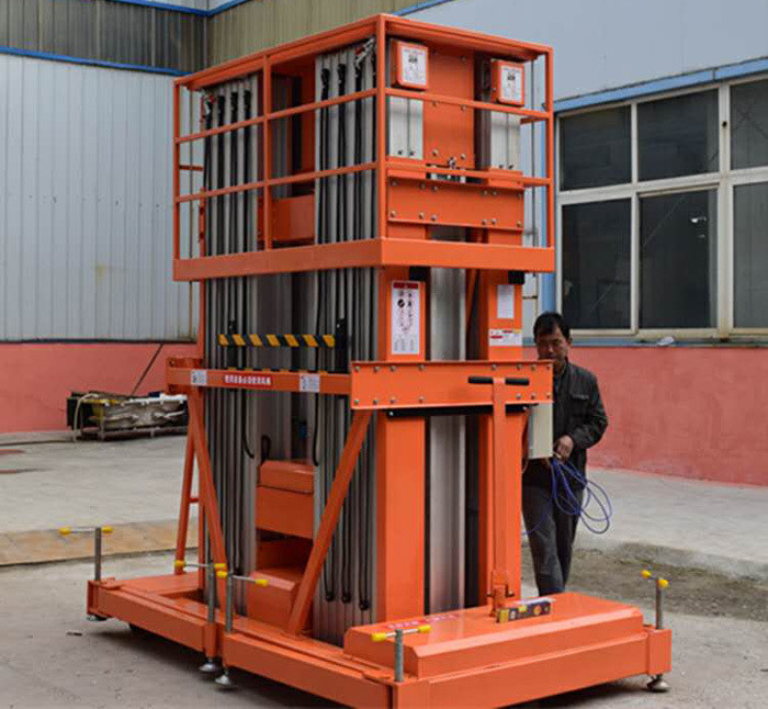 六柱鋁合金升降機結構緊湊,采用高強度專用鋁型材,重量輕,移動靈活,外形美觀,平臺自身佩戴保險鋼繩和安全保護裝置。佩戴上控開關或遙控系統可靈便進出電梯,主要用于高檔賓館、會場、大型商場的布置、燈具維修及高空作業。
