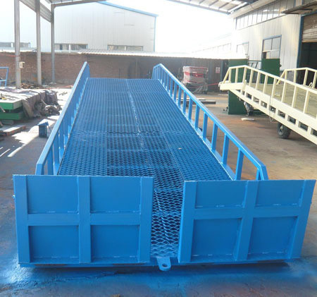 移動(dòng)式登車(chē)橋是與叉車(chē)配合使用的貨物裝卸專(zhuān)用輔助設(shè)備,有了它叉車(chē)能直接從地面駛?cè)肫?chē)車(chē)廂內(nèi)部進(jìn)行批量裝卸作業(yè)。產(chǎn)品采用人工液壓動(dòng)力,不需接動(dòng)力電源。只需單人操作,即可實(shí)現(xiàn)貨物的安全快速裝卸。它可使企業(yè)減少大量勞動(dòng)力,成倍提高裝卸作業(yè)效率,加快貨物流通速度,獲取更大經(jīng)濟(jì)效益。