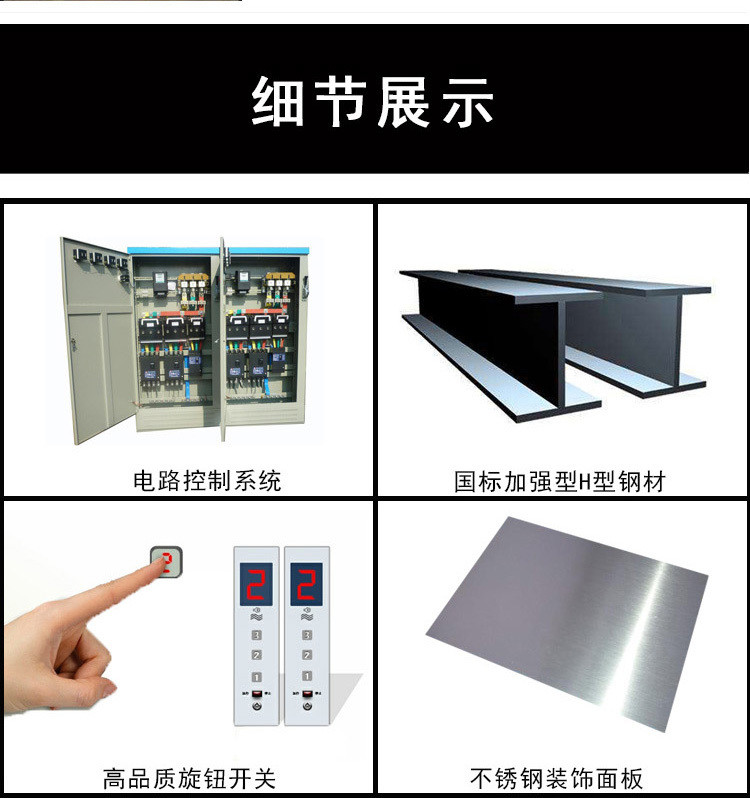 手拉門(及手動門)的結構類似于我們家里常用的門,有門鎖聯動裝置和比較重。有安全裝置系統:有停電應急、電磁鎖、減震器、變頻器、漏電保護器等多處為了人們使用家用電梯安全設置。升降平穩、操作簡單、優質價廉、載人載雜物均可。為人們提供了方便,節省了時間,為工作提供了效率。