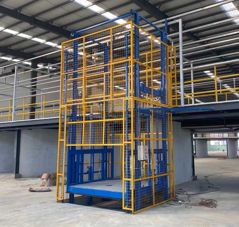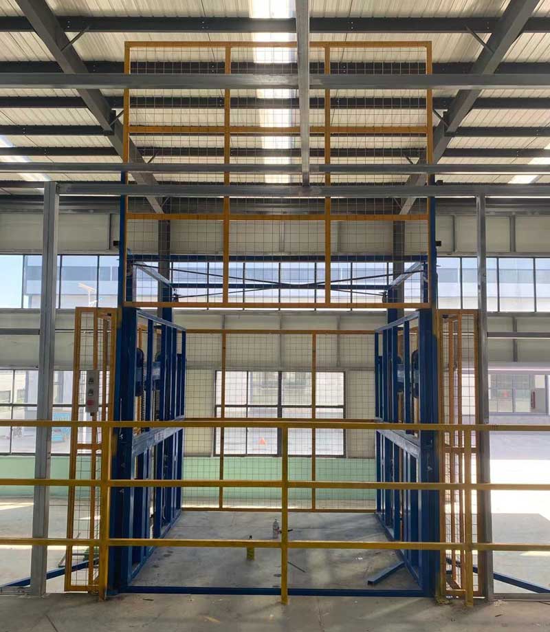 導軌式升降貨梯主體結構使用鋼材焊接而成,故而具有載重量大,強度高,耐磨損等突出優點;臺面采用高強度防滑花紋的鋼板,抗壓、耐磨、防滑,使貨物在運輸過程中更穩固;導軌采用H型鋼,其抗彎能力強、直線精度高,設備運行更加安全平穩。