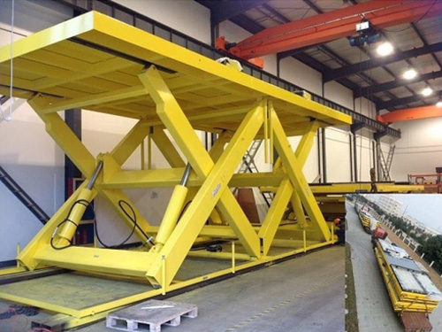 雙跨剪叉式升降機采用高強度錳鋼結構,工作臺面寬大,承載能力高,可多人同時作業。固定雙跨式升降機升降平穩、承載能力大、操作簡單,廣泛用于車輛維修、窯爐、化工廠、設備配套等行業使用。還用于起吊設備維護,野外電力設施維護,鋼架結構廠房維護等。